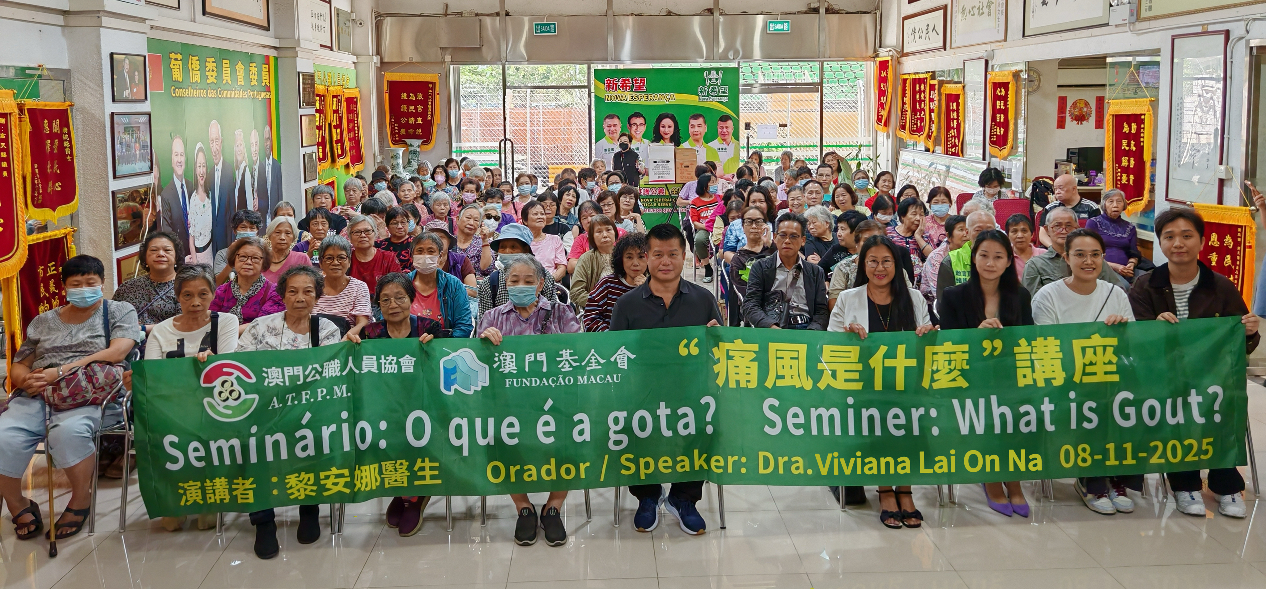 隨着生活方式與飲食結構的改變,痛風已成為影響澳門市民健康的常見代謝性疾病,尤其對中老年人及飲食高嘌呤人群的生活質量造成不小影響。為幫助市民科學認識痛風、掌握實用的預防與調養方法,澳門公職人員協會於 2025 年 11 月 8 日(星期六)下午 3 時,在澳門基金會的贊助下,舉辦「痛風是什麼?」知識講座。活動邀請到資深中醫黎安娜醫生擔任主講,吸引約百名市民踴躍參與。