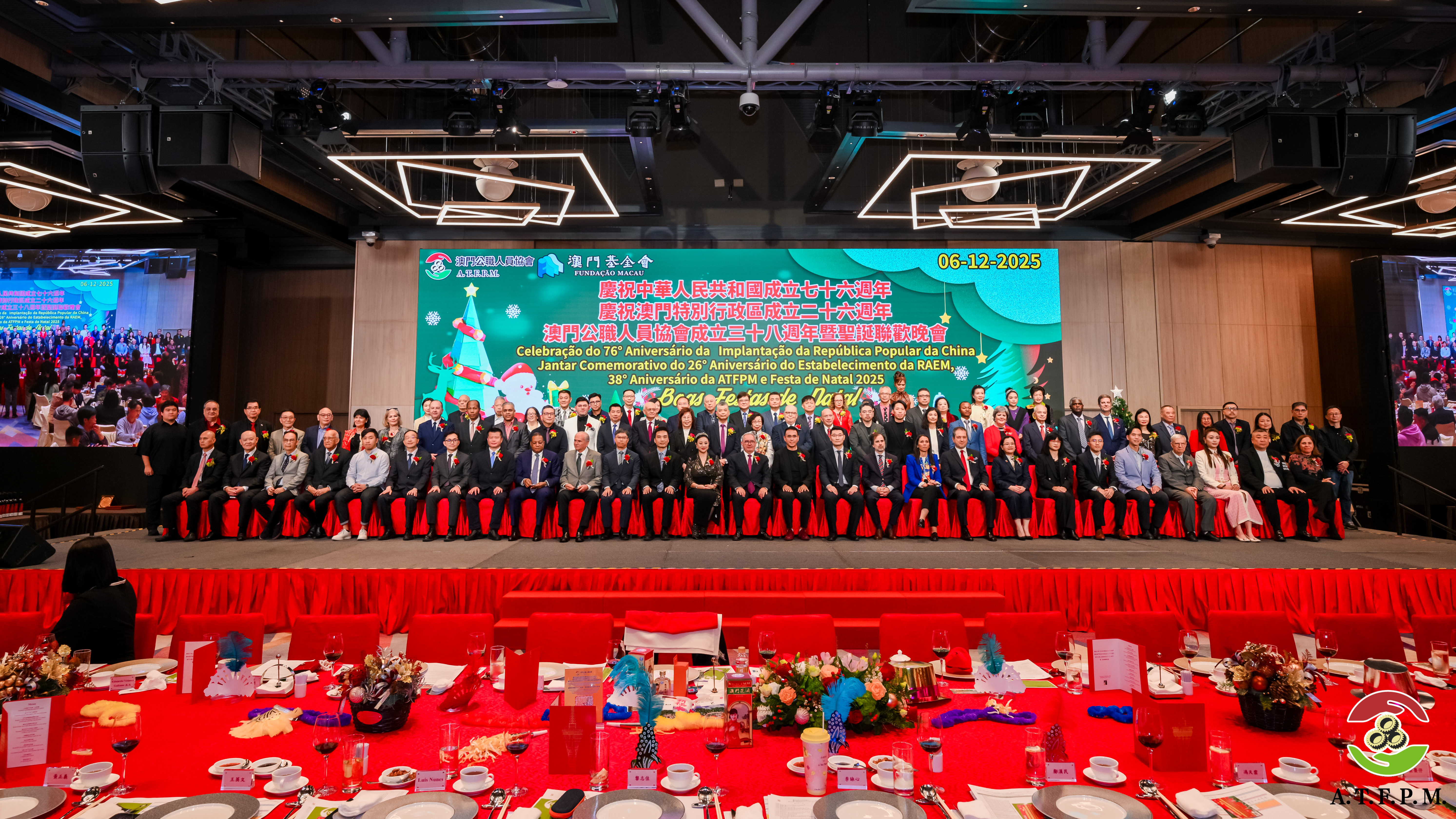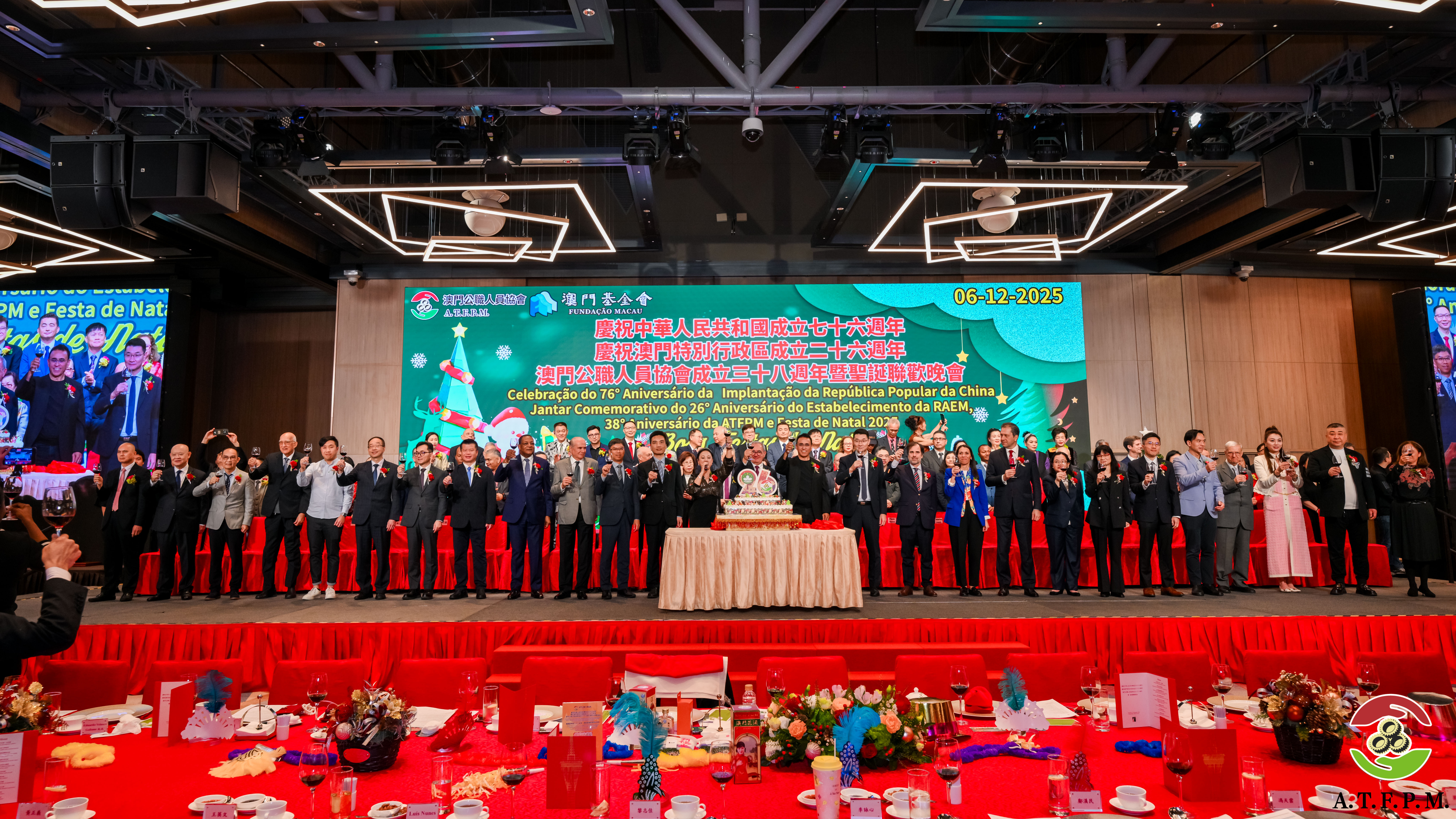 澳門公職人員協會於二零二五年十二月六日(星期六)晚上六時正,在澳門旅遊觀光塔宴會廳隆重舉行“慶祝中華人民共和國成立七十六週年,澳門特別行政區成立二十六周年,澳門公職人員協會成立三十八週年及聖誕聯歡晚會”。當晚將近一千名來賓、會員及其家屬參加,現場席間冠裳楚楚,觥盞相酬,衣香裊裊裹著笑語喧闐,端的是一場盛會佳宴。