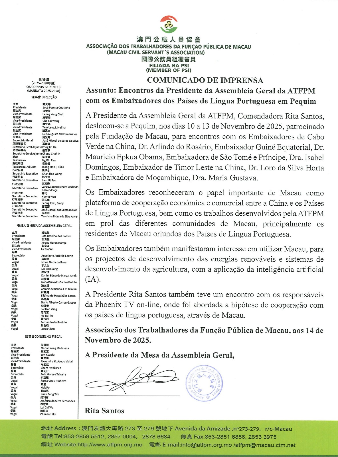 Deputado à Assembleia Legislativa e Presidente da Direcção da ATFPM