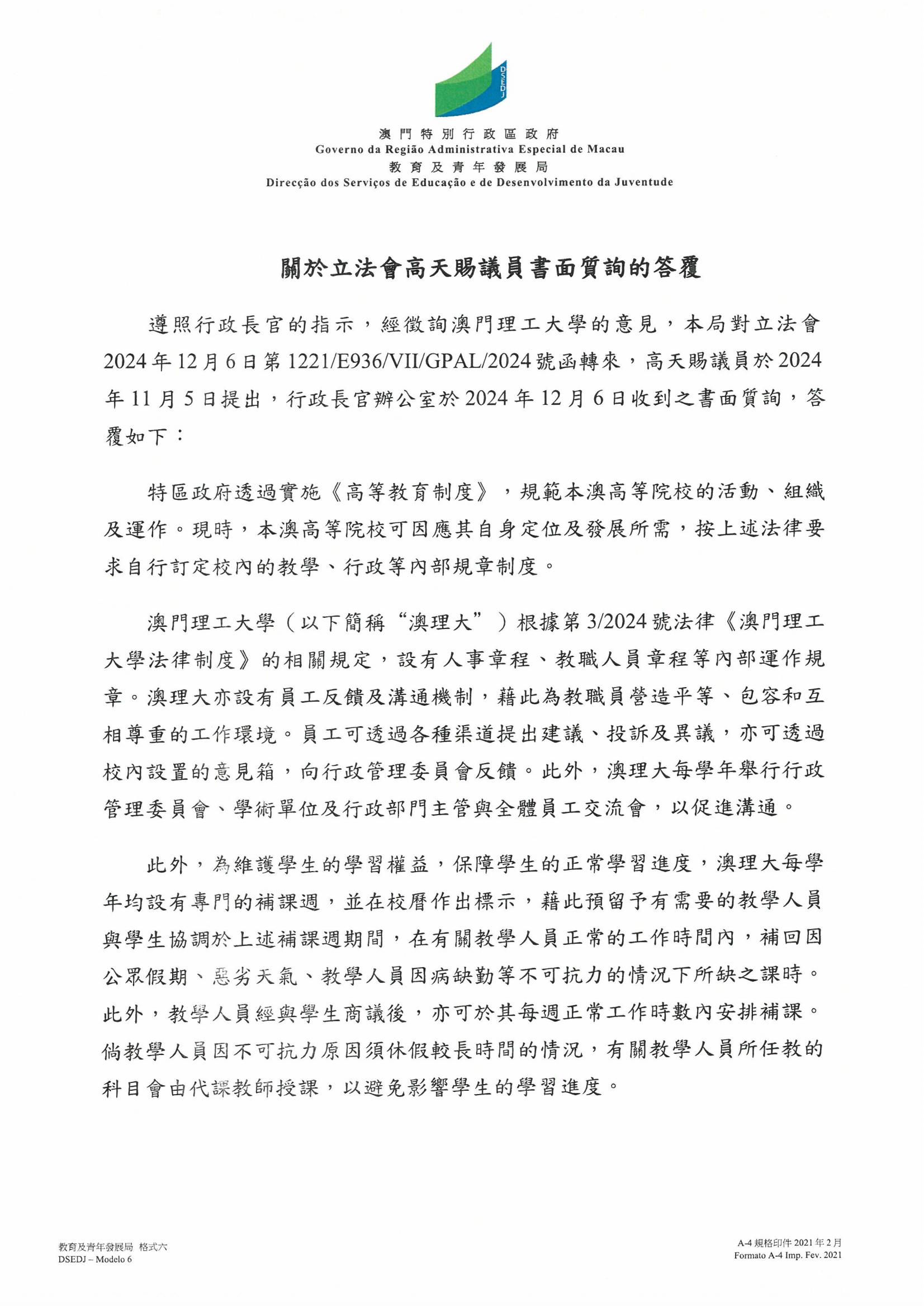 主頁 >> 質詢答覆